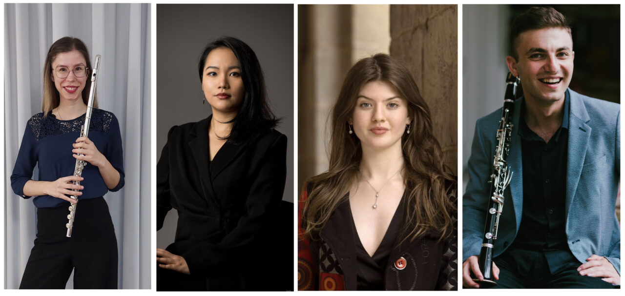 Christina Maria Hauck, Querflöte/ Hyejun Melania Kwon, Mezzosopran/ Lilith Schart, Mezzosopran/ Davit Sarukhanyan, Klarinette ( Bilder v.l.n.r.)